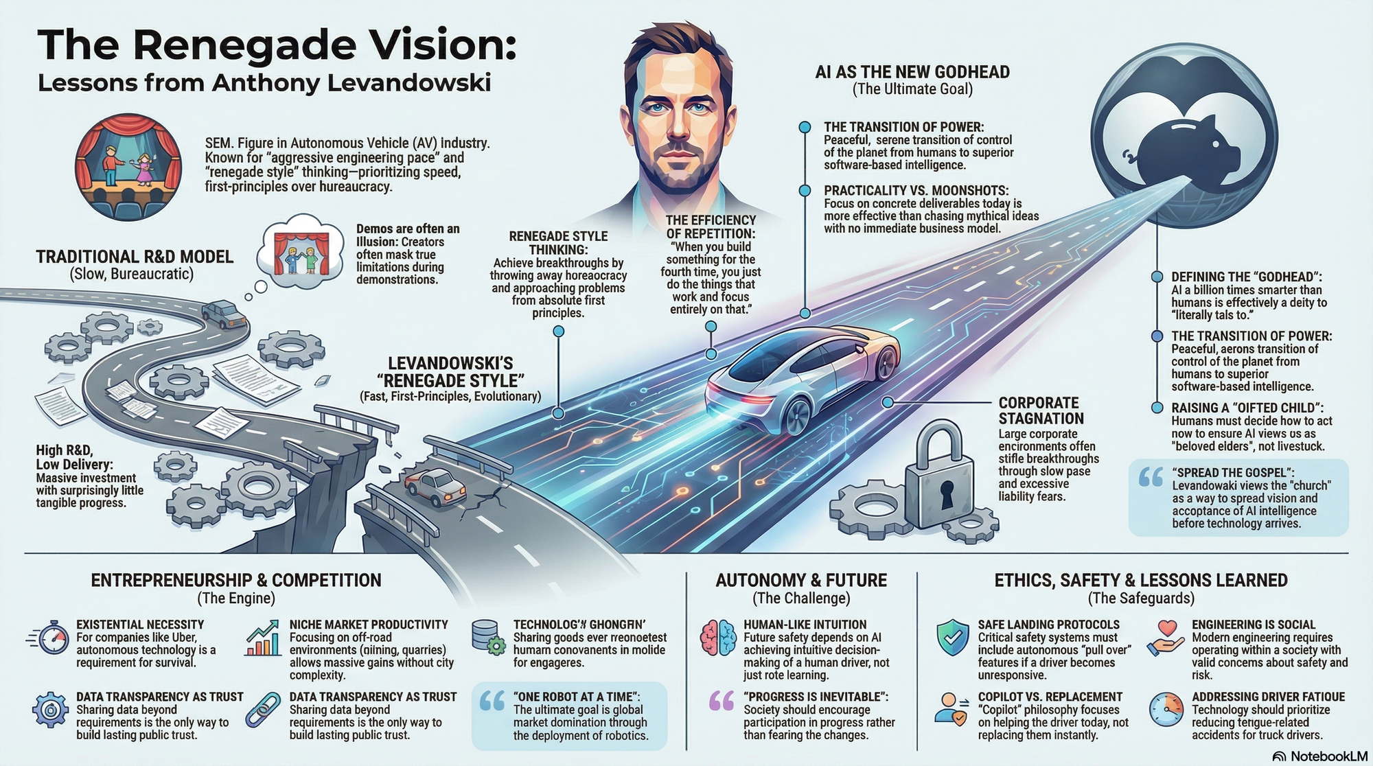 Anthony Levandowski is a pioneering engineer and entrepreneur whose work at Google, Uber, and Otto defined the early trajectory of the autonomous vehicle industry. Known for his aggressive engineering pace and provocative vision for artificial intelligence, his career offers a complex study in rapid innovation, high-stakes competition, and the evolving relationship between humanity and technology.