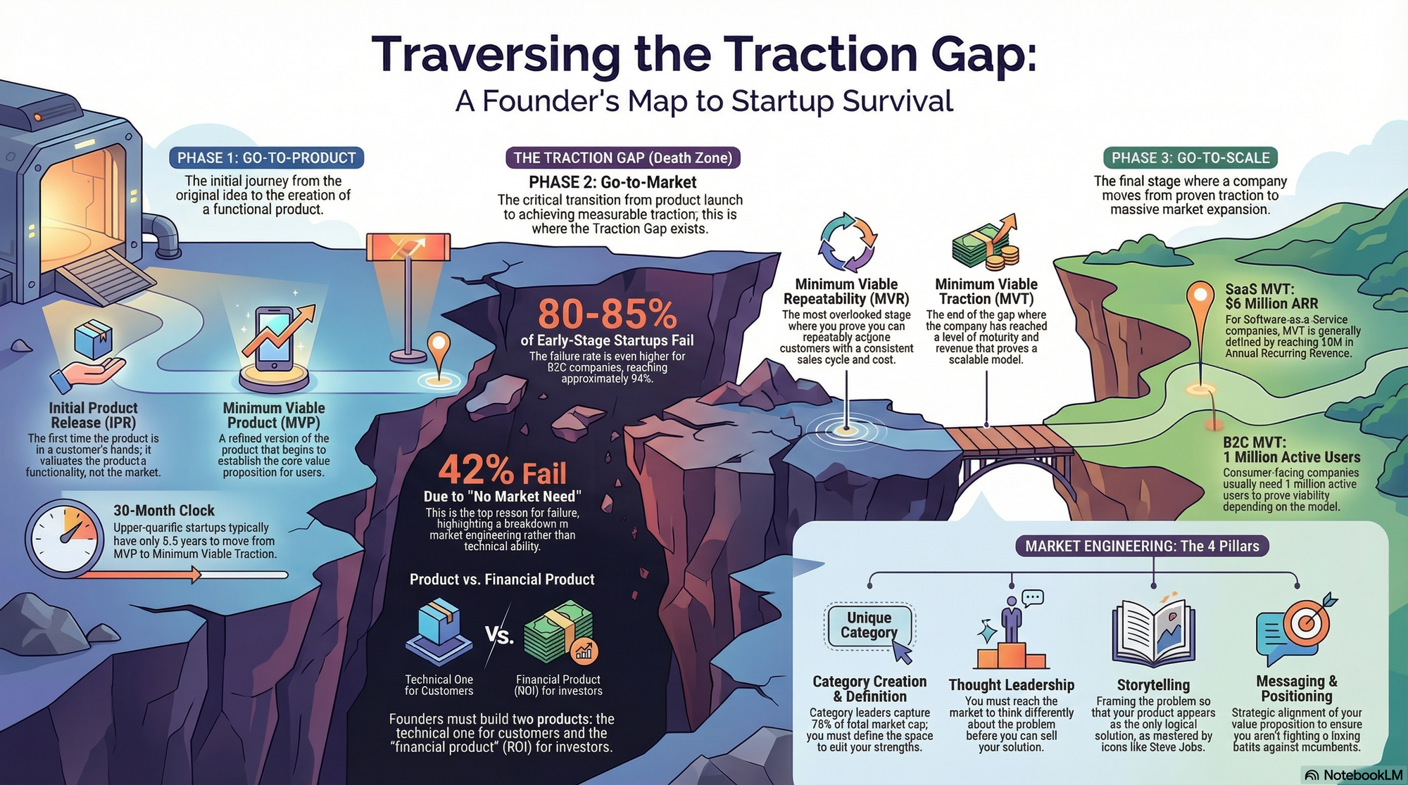 - Process over Product: "Traversing the Traction Gap is not just about building a product; it is about building a company. It requires a systematic approach to market engineering." Source: Wildcat Venture Partners[4][5][8][9]