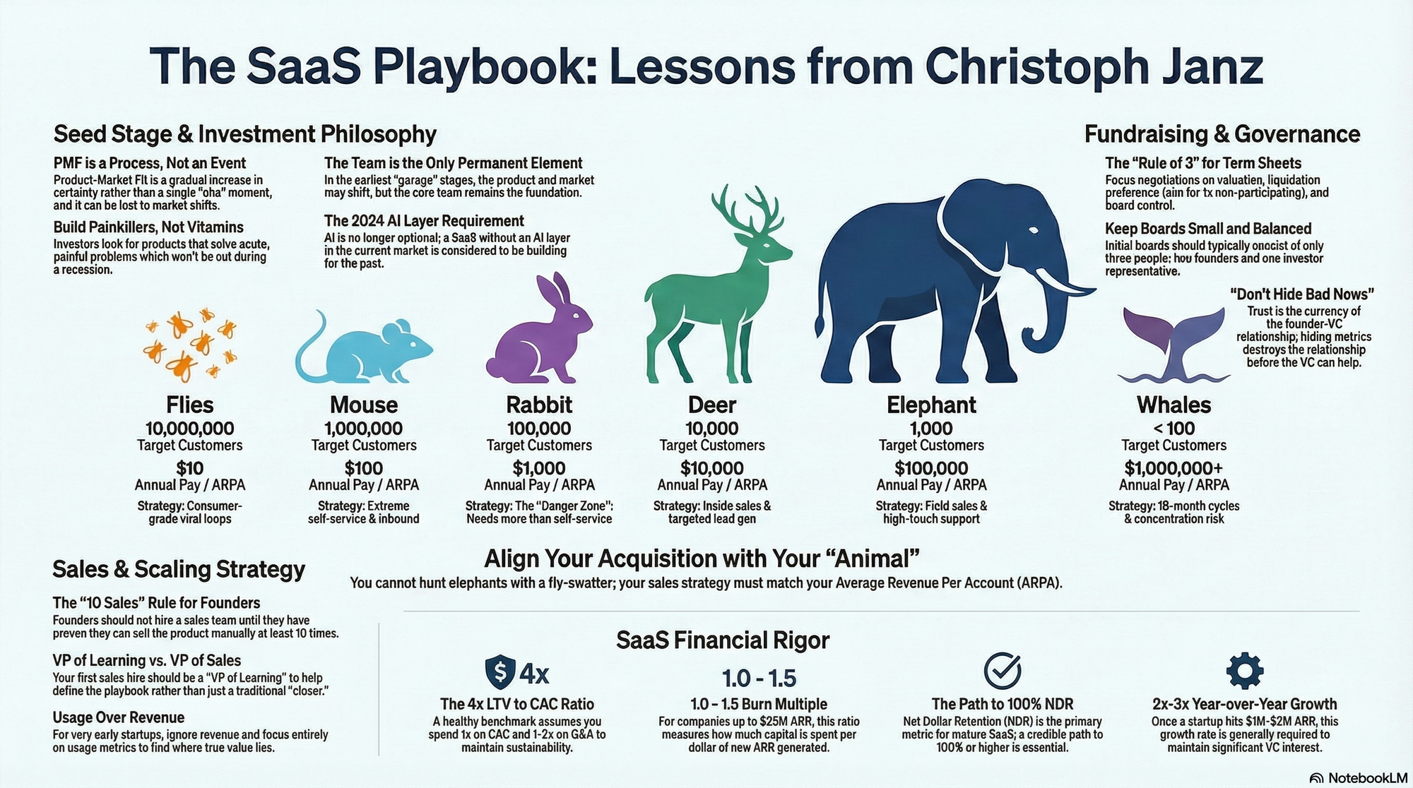 - On Strategy Alignment: "Your customer acquisition strategy must be perfectly aligned with your ARPA; you cannot hunt elephants with a fly-swatter." — Source: Point Nine Capital