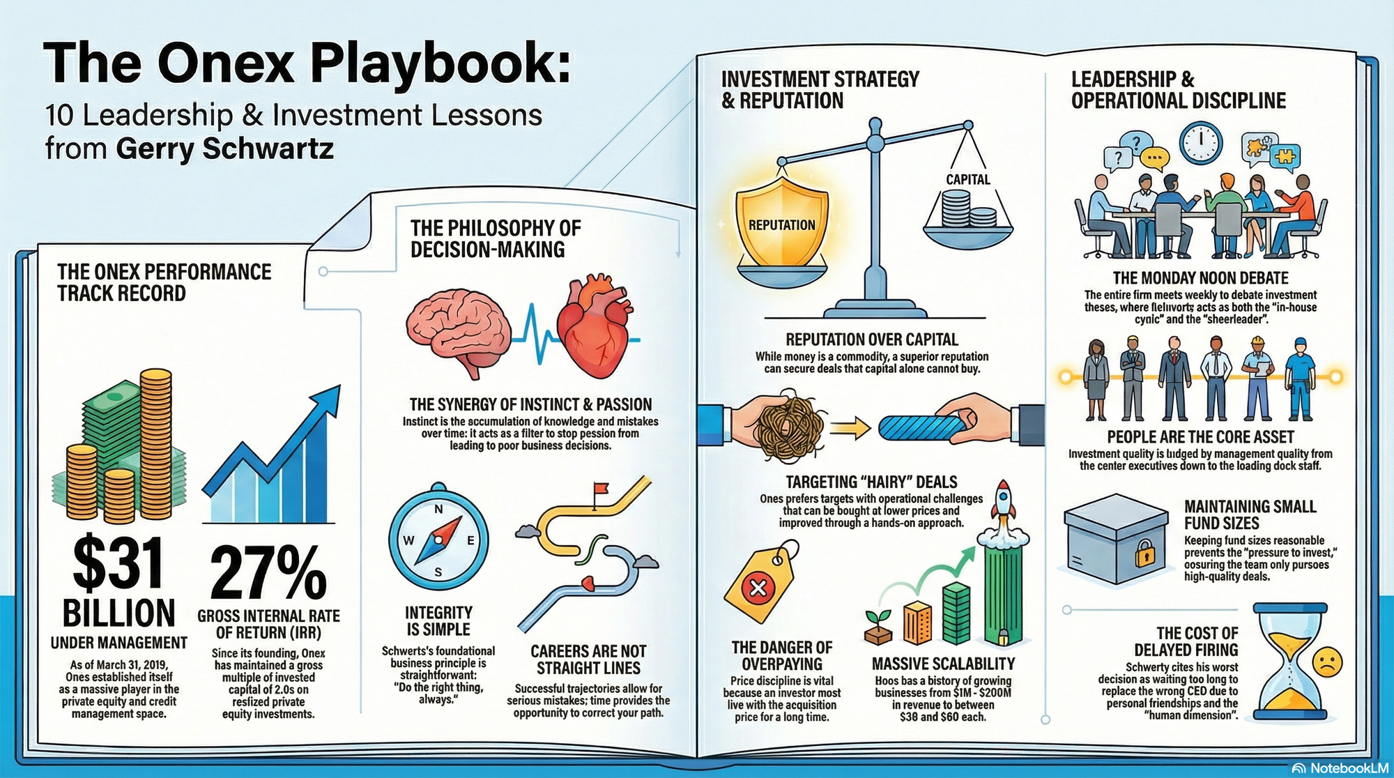 7. On developing your own style and relationship building as a key comparative advantage: “Lacking the same size or brand recognition as its larger U.S. rivals has forced Onex to develop its own particular style. It tends to stick close to industries it knows well, particularly manufacturing, and is more inclined, Mr. Schwartz said, to roll up its sleeves and get into the operation of its businesses. TorreyCove’s Mr. Fann describes it as “a very nose-to-the-grindstone type of approach.” At a recent investor day, Bobby Le Blanc, Onex’s New York-based senior managing director, said the firm tends to prefer targets with a “little more hair on them,” meaning they can be bought at a lower price but require more fixing up. “When we get those right, they really lead to good outcomes,” he said. Onex also views relationship building as a key comparative advantage over more transaction-oriented competitors. In the current crowded playing field, Mr. Schwartz places increasing emphasis on what he calls Onex’s “proprietary value” - its ability to leverage past successes for future advantage.”