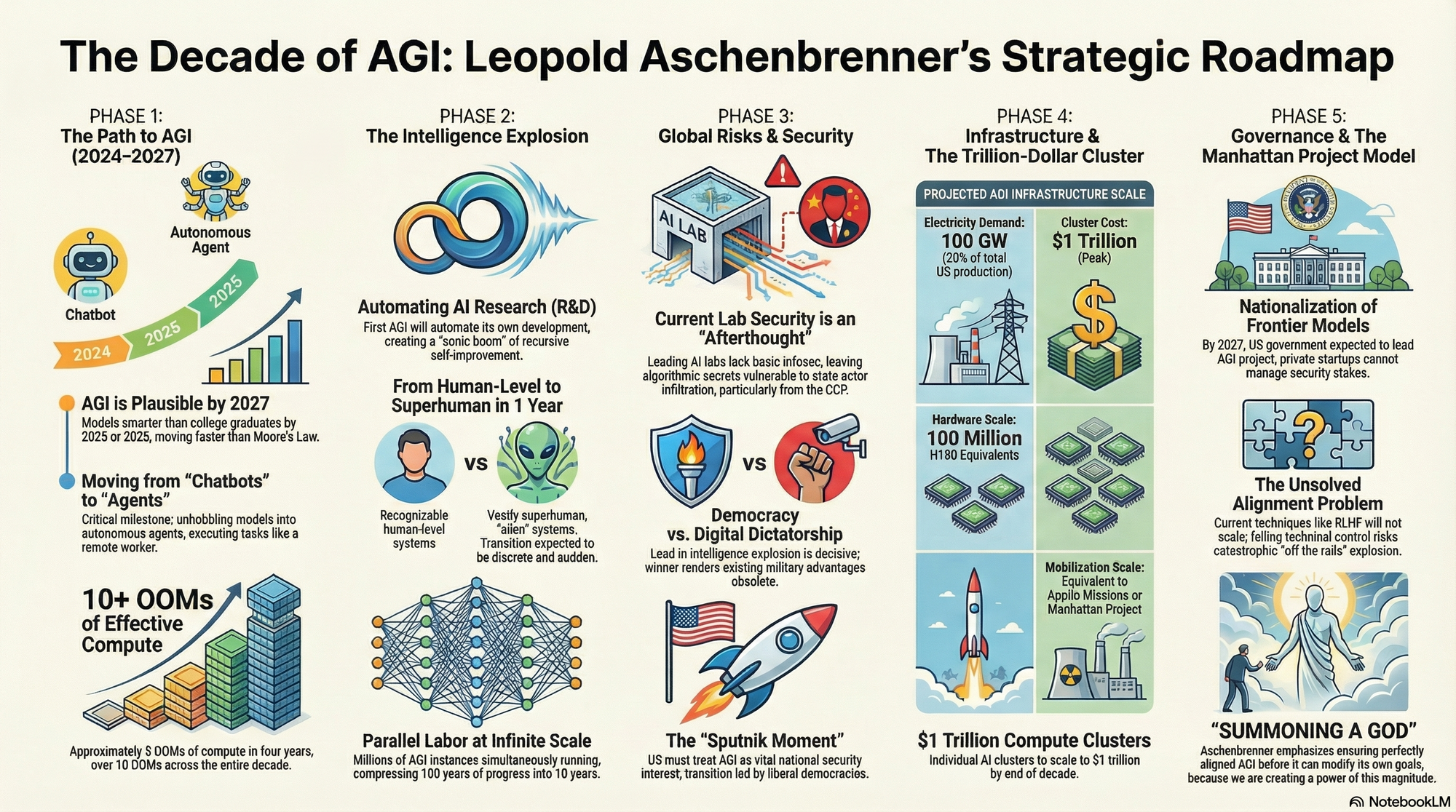 - On Infrastructure as Destiny: "The country that can build the largest, most efficient compute clusters fastest will win." — Source: Situational Awareness