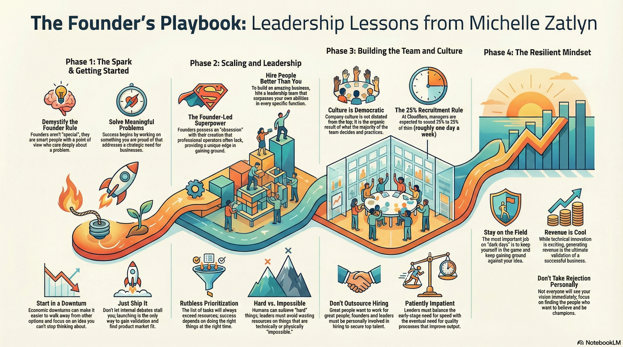 - On the art and science of leadership: Zatlyn emphasizes that leadership is a combination of intuition and learned skills, and founders must embrace being in charge to make effective decisions. [13]