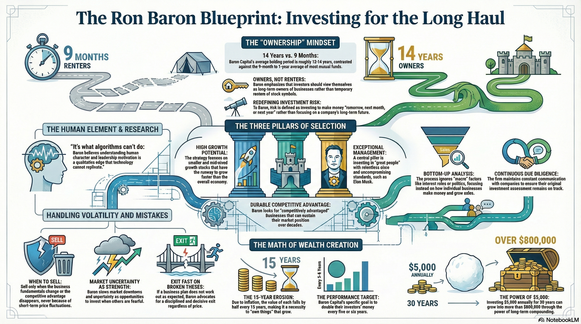- "The best way to invest, according to Baron, is to own the business."[6] Reinforcing the ownership mindset.