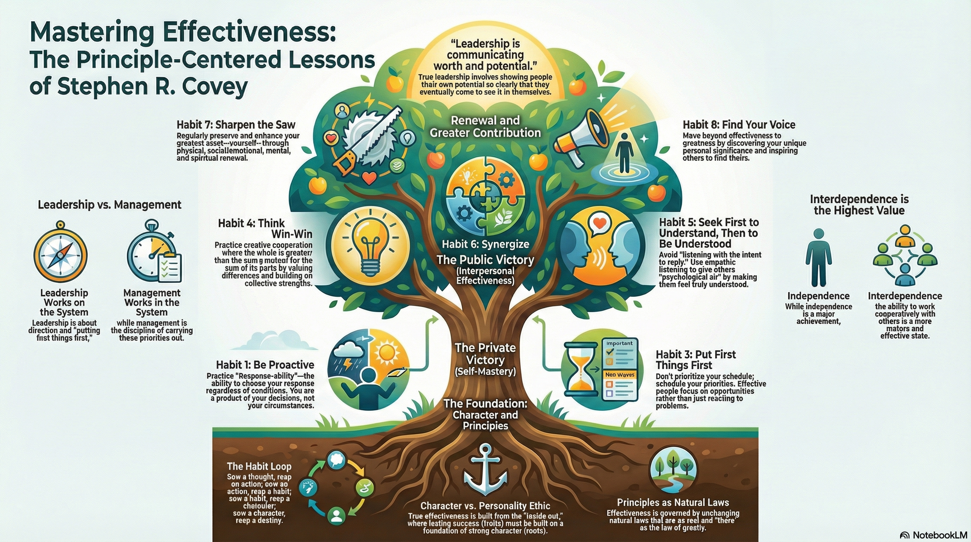 - "The 8th Habit is to find your voice and inspire others to find theirs." This moves beyond effectiveness to greatness.
