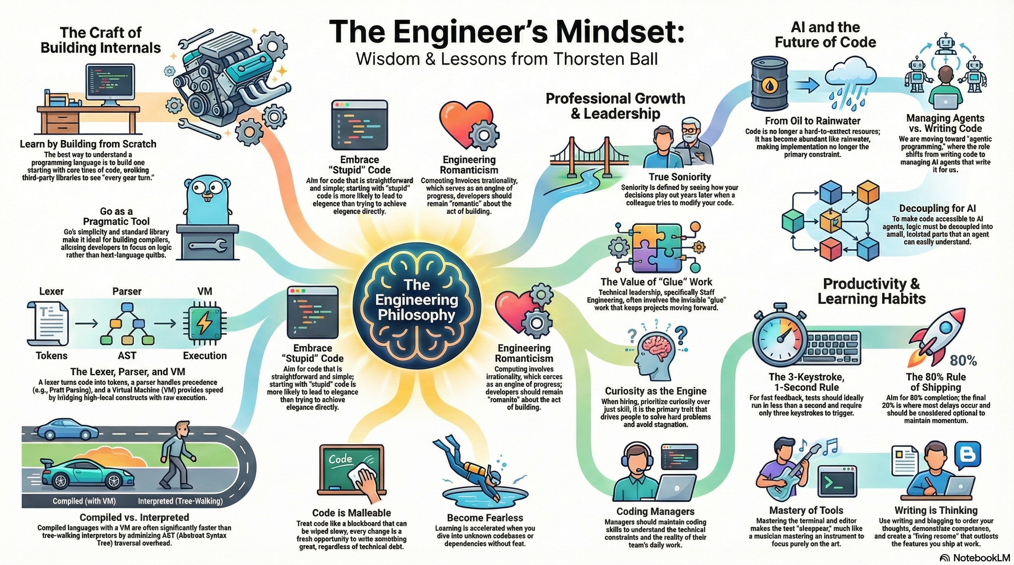 Thorsten Ball is a distinguished software engineer, author, and educator renowned for demystifying the internals of programming languages through his "Monkey" series. Over a decade of professional experience at companies like Sourcegraph and Zed, he has synthesized a philosophy of "recreational programming" and "romanticism" that champions simplicity, fearlessness, and deep technical curiosity.